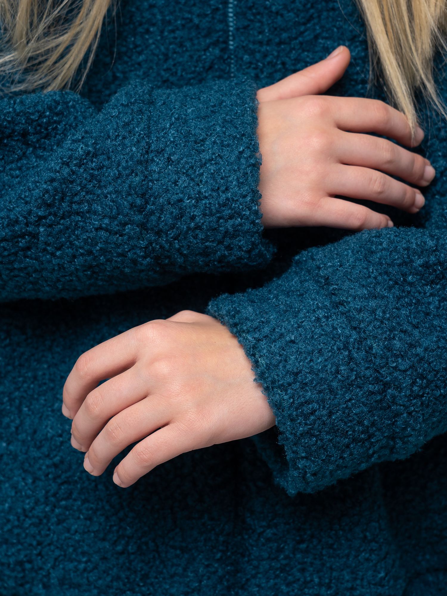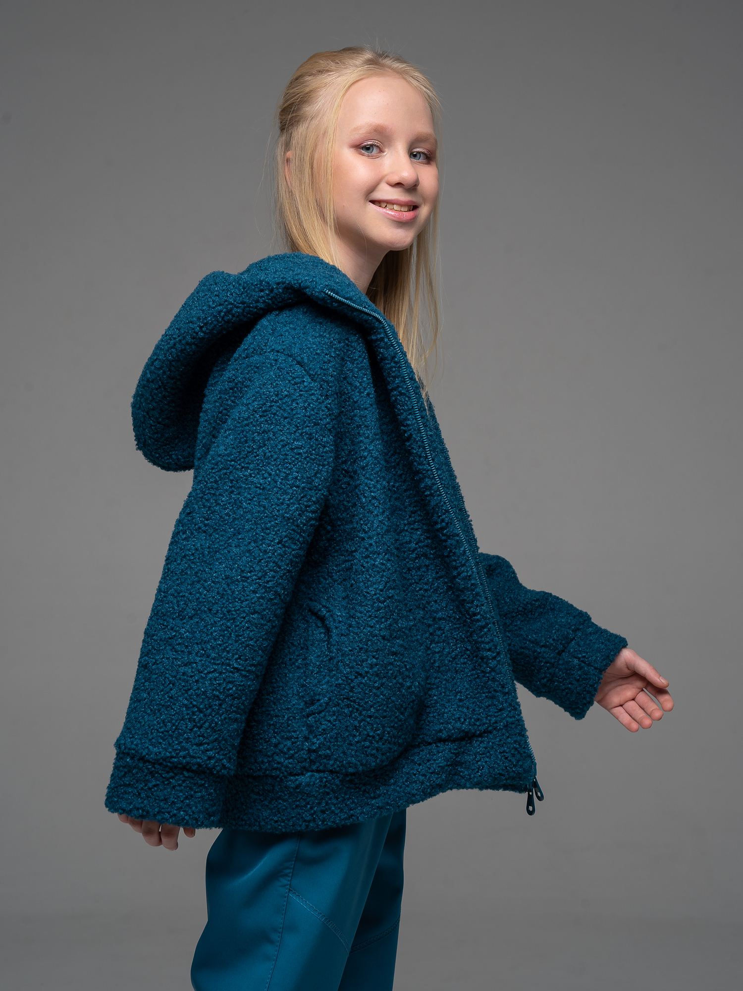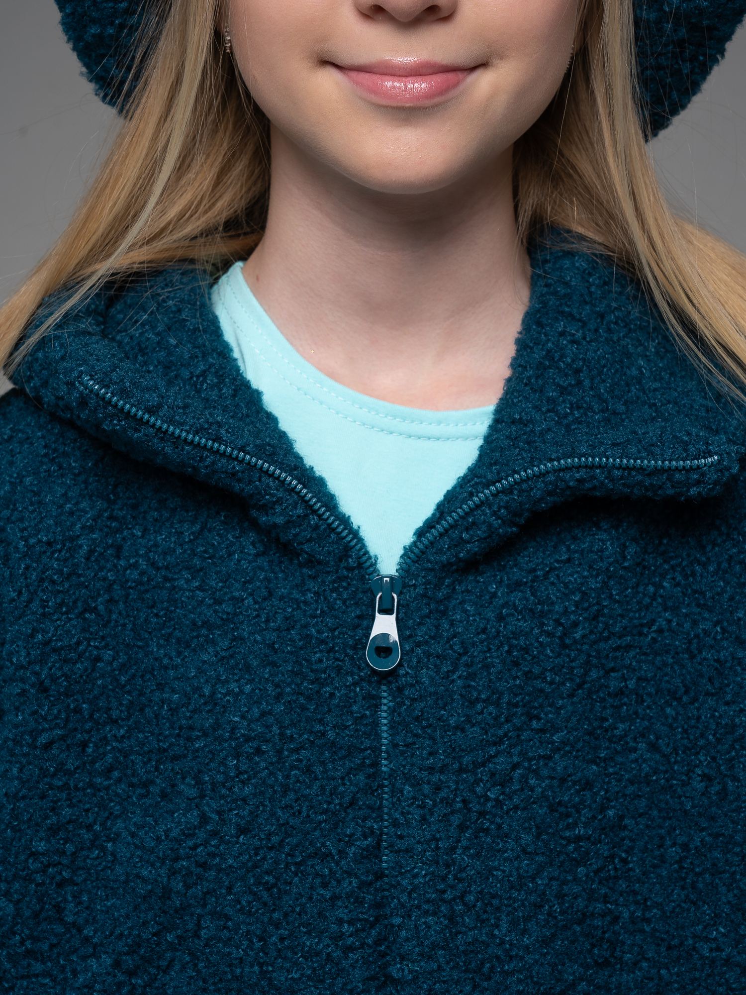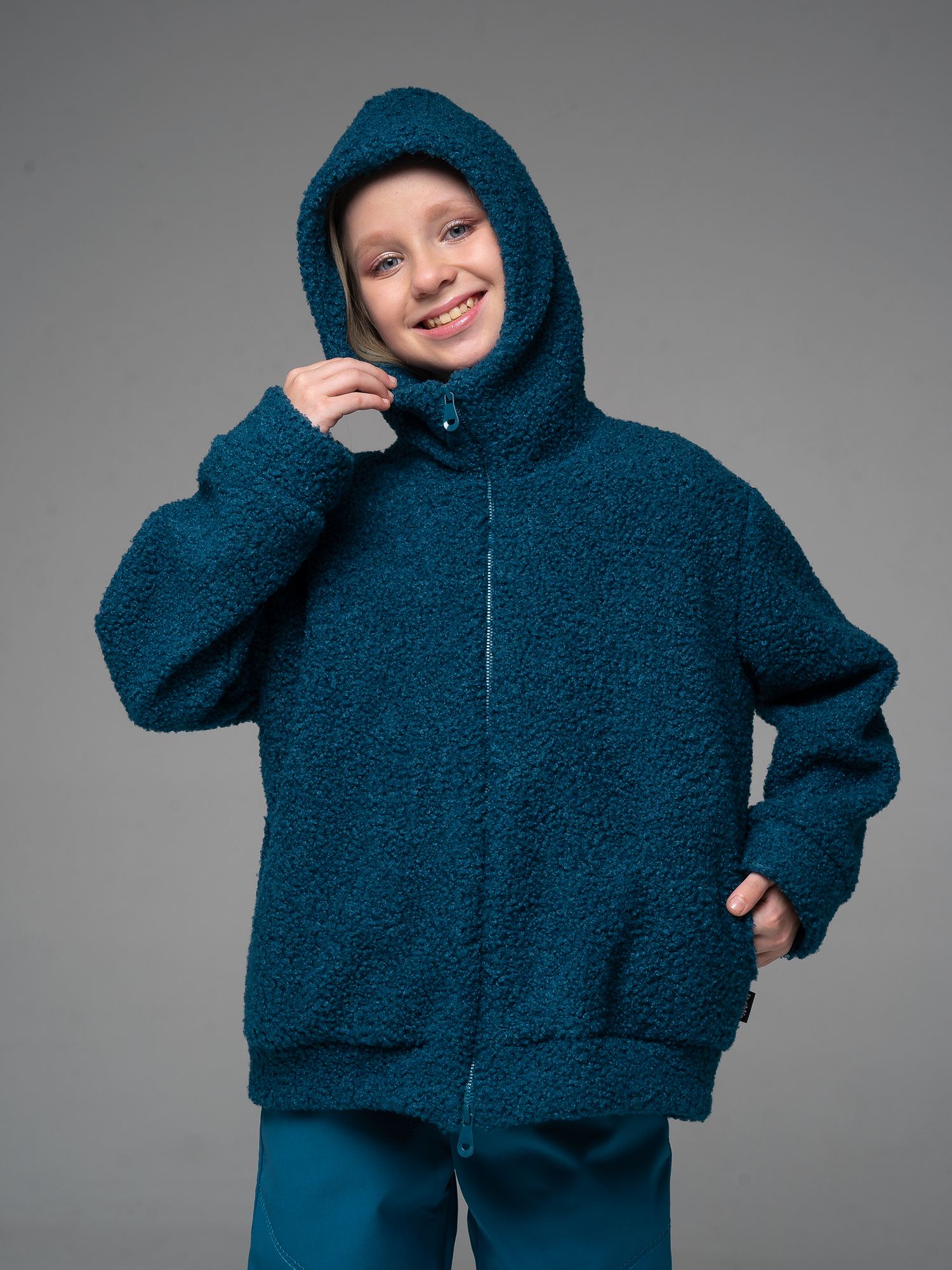 Плюшевая толстовка из шерпа петроль цвета для девочкис длинными рукавами и капюшоном от российского производителя "Looklie" - стильная уютная вещь гардероба для каждой девочки. Кофта тедди с боковыми карманами выполнена из шерпы премиального качества. Детская толстовка свободного силуэта очень мягкая, теплая и приятная к телу. Трендовая кофта для девочки имеет объмные рукава и двойной капюшон . Толстовка тедди для девочки — тренд 2025. Застежка молния позволяет легко надевать и снимать кофту, а также регулировать температуру внутри. Карманы добавляют удобство и функциональность в эту толстовку. Кофта детская плюшевая идеально подходит для прогулок, отдыха и повседневной носки. Качество ткани, а также бережный уход (рекомендована бережная стирка при температуре до 30 градусов) обеспечивает длительный срок службы кофты, материал не растягивается и не выцветает.