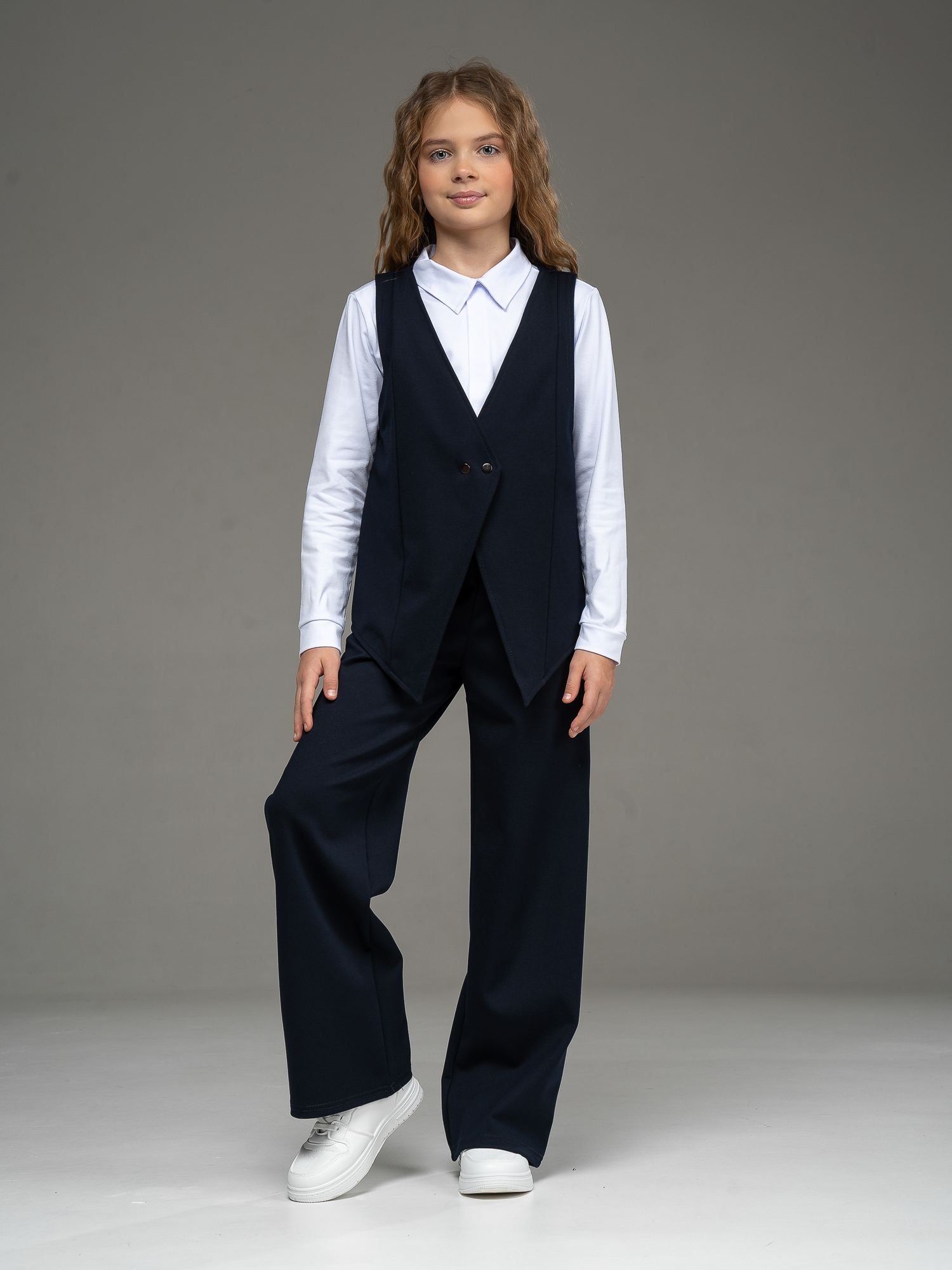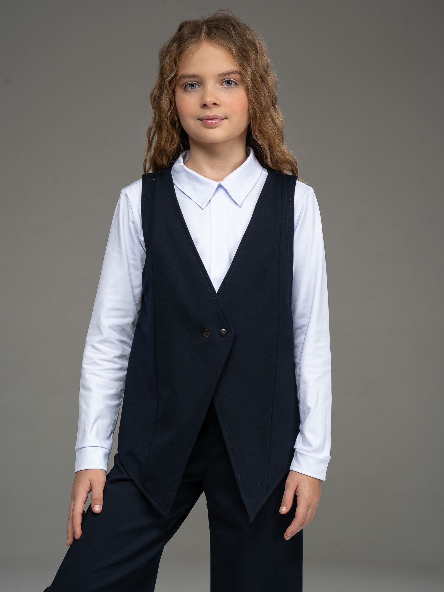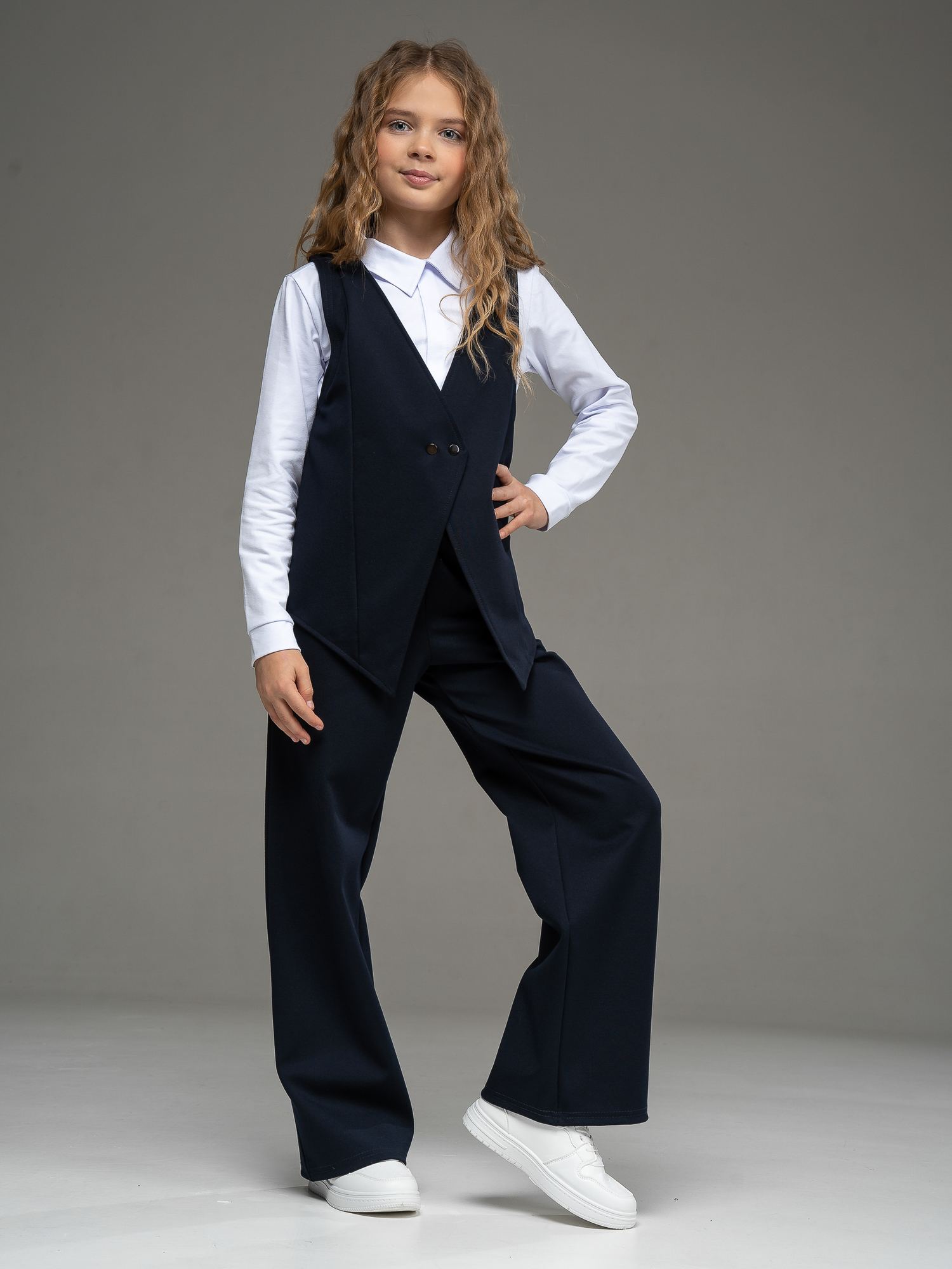 Жилет школьный для девочки - это модель оверсайз, которая не только подчеркнет индивидуальность маленькой леди, но и создаст комфорт и уют в холодное время года. Благодаря удачному крою исключительно удобно сидит на фигуре, не сковывая движений и подчеркивая стройность силуэта.