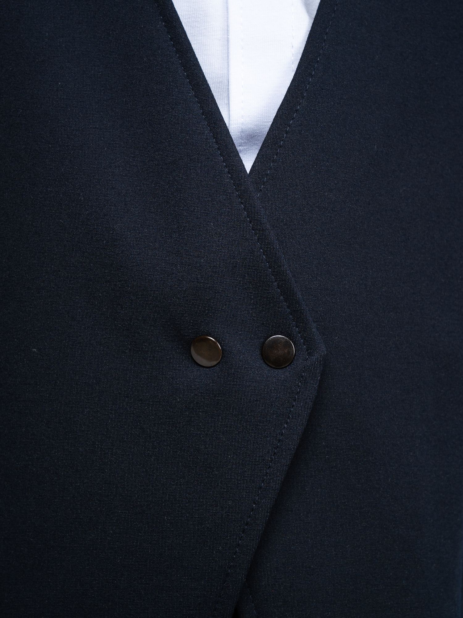 Этот жилет застегивается на две металлические кнопки, что делает его невероятно удобным и практичным в использовании. К тому же, он прекрасно сочетается с различными элементами гардероба – будь то юбка, брюки или джинсы.