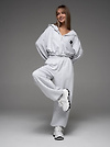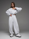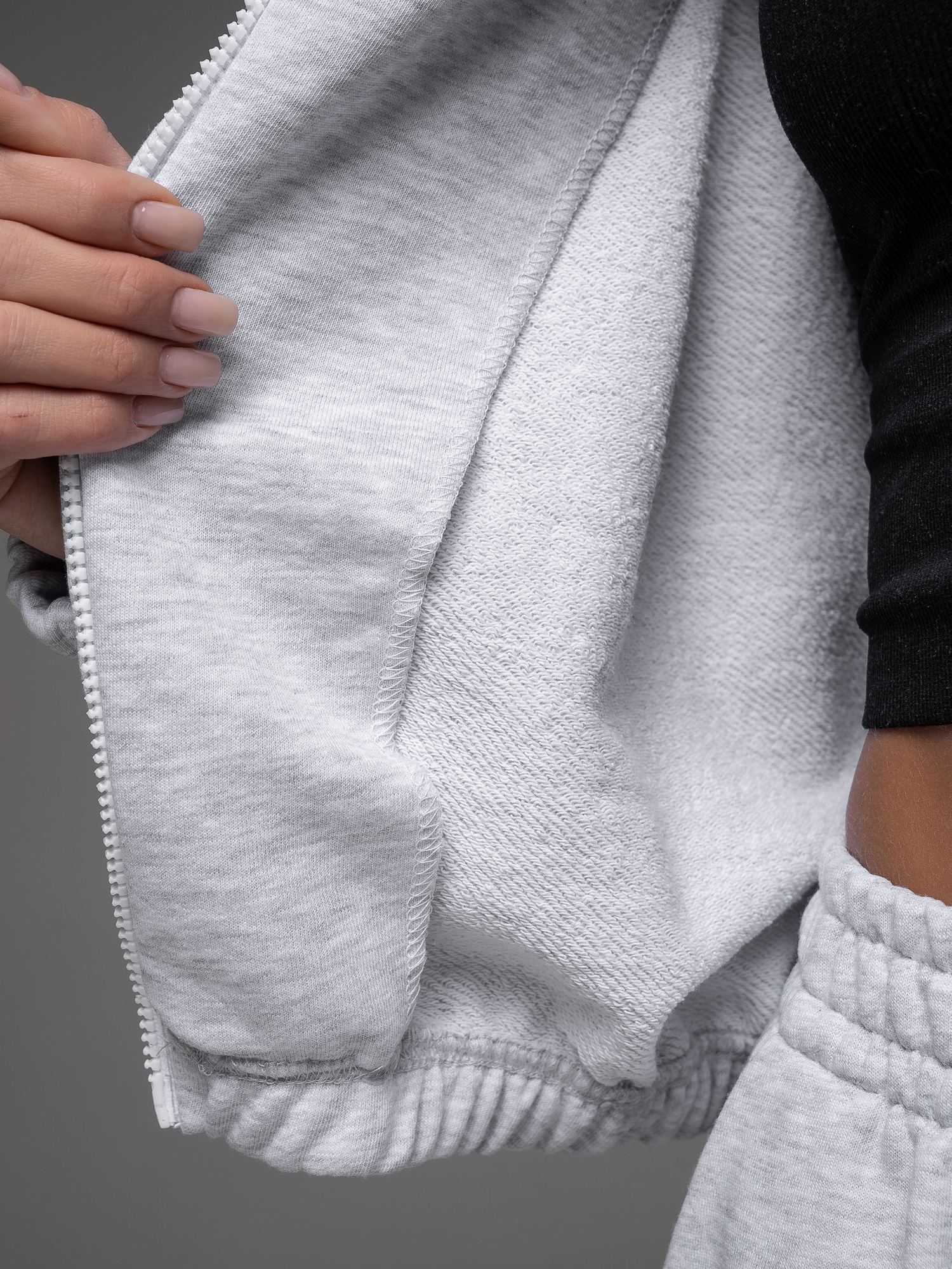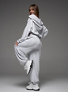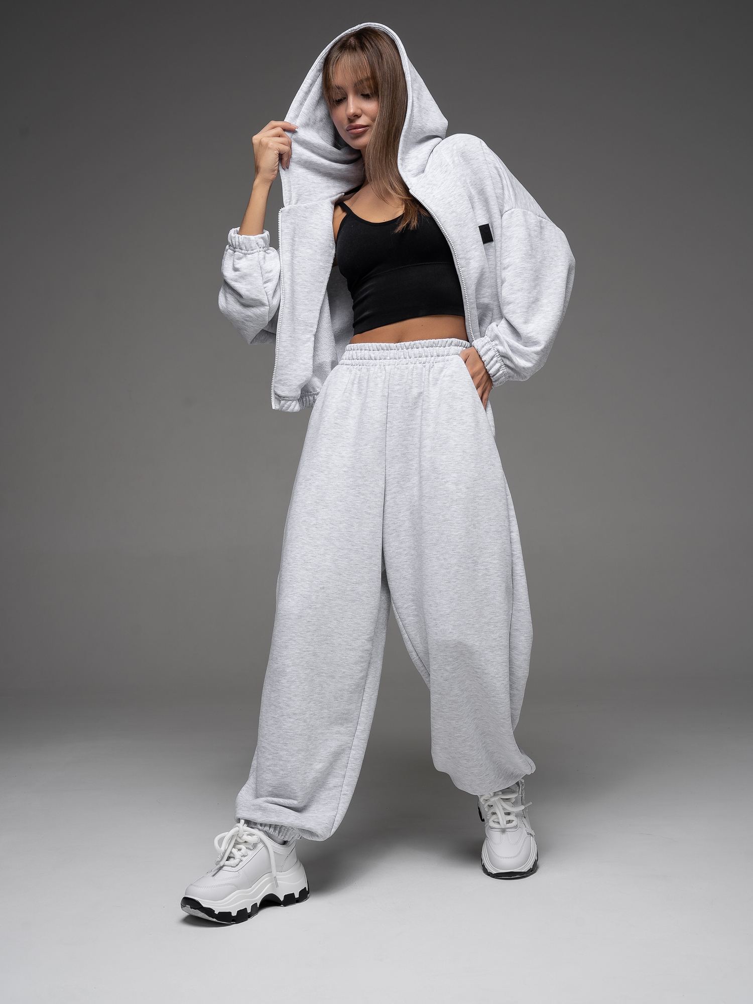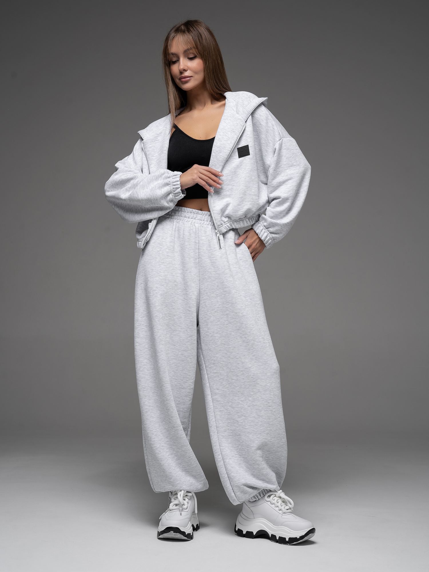 Женский костюм из футера(3х нитка) серого цвета без начеса,с стиле "Спорт-шик" состоящий из брюк и кофты с капюшоном на молнии. Толстовка укороченная на молнии свободного силуэта с капюшоном и длинными рукавами. Низ рукавов и толстовки- на резинке. Брюки свободного силуэта с боковыми карманами, по талии и низу изделия- резинка. Универсальный спортивный костюм женский для повседневной жизни, выполнен из хлопкового футера 3х нитки (без начеса)- ткань средней плотности, подойдет на весну и осень, (демисезон) и прохладное лето. Наш трикотажный брючный костюм подойдет для занятий спортом, фитнеса, пилатеса, танцев и йоги. Так же в качестве спортивной формы для занятия спортом. Спортивный комплект послужит прекрасным вариантом для прогулок и походов. Хлопковая свободная двойка прекрасно смотрится на девушках разного типа фигуры и благодаря свободной кофте оверсайз подойдет и беременным девушкам. Повседневный трикотажный комплект прекрасно впишется в любой гардероб, т.к. штаны и кофту можно сочетать с любыми вещами из гардероба! Кофту на молнии и спортивки можно носить по отдельности, сочетая их с различными элементами спортивной и повседневной одежды. Плотное трикотажное полотно футер 3-х нитка без начеса, гладкое снаружи, изнутри - мягкое и приятное. В состав хлопковой ткани для эластичности и износостойкости добавлен полиэстер. Он универсален! И в поездке или путешествии будет незаменимым вариантом как на улицу, так и в спортзал. Наша стильная спортивная новинка станет удачным подарком подруге, сестре или любимой девушке на день рождения и любой другой праздник.